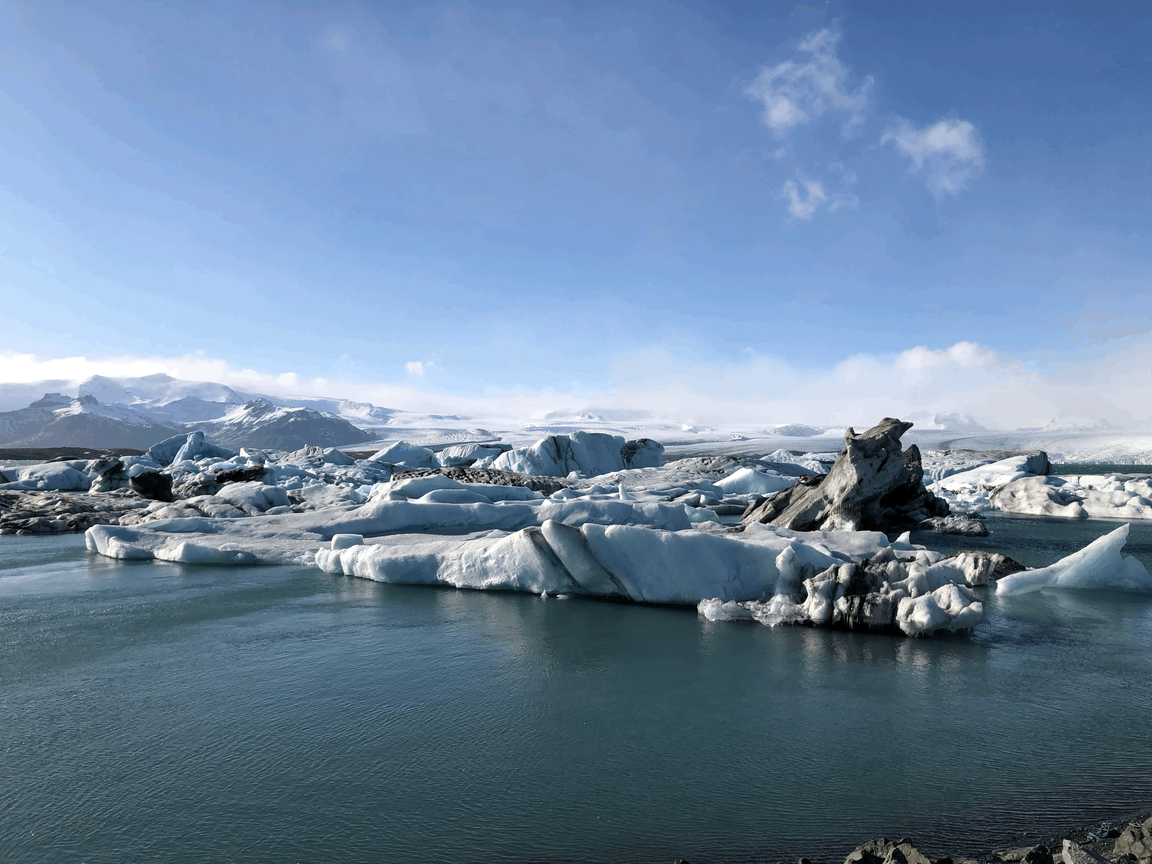 From Jökulsárlón, chunks of ice start a slow and long journey via Jökulsá, Iceland’s shortest river, to the Atlantic Ocean.
