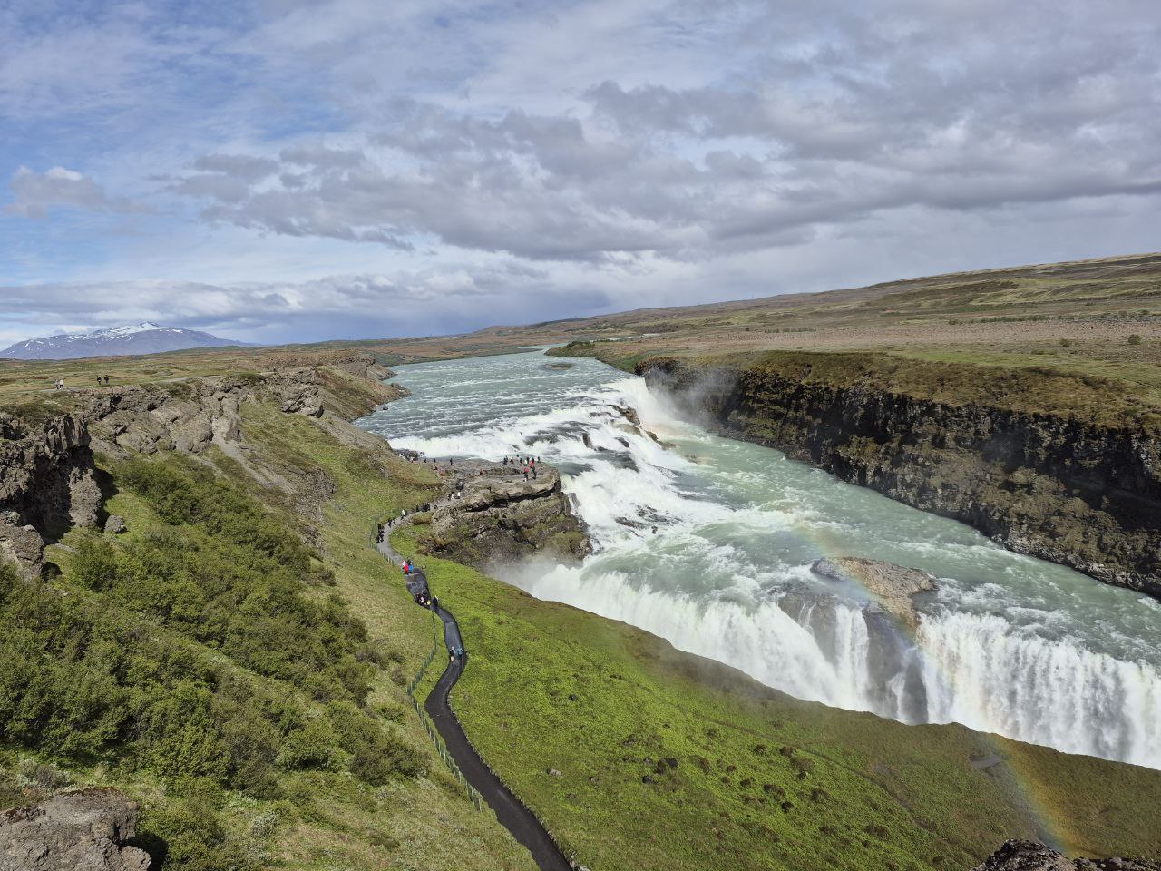 The Golden Circle the most popular sightseeing route in Iceland. The trio that makes it is the historical Thingvellir National Park, geothermal area of Haukadalur Valley where is located Geysir, and the famour Gullfoss, a powerful waterfall with the landscape from the postcards. Descending in two parts, the waterfall has a combined drop over 32 meters and spans nearly 20 meters in width, making it one of the most beautiful cascades in Europe. Originating from Icelands‘s second largest glacier, Langjokull, the waters of the Hvita River rush towards Gullfoss.