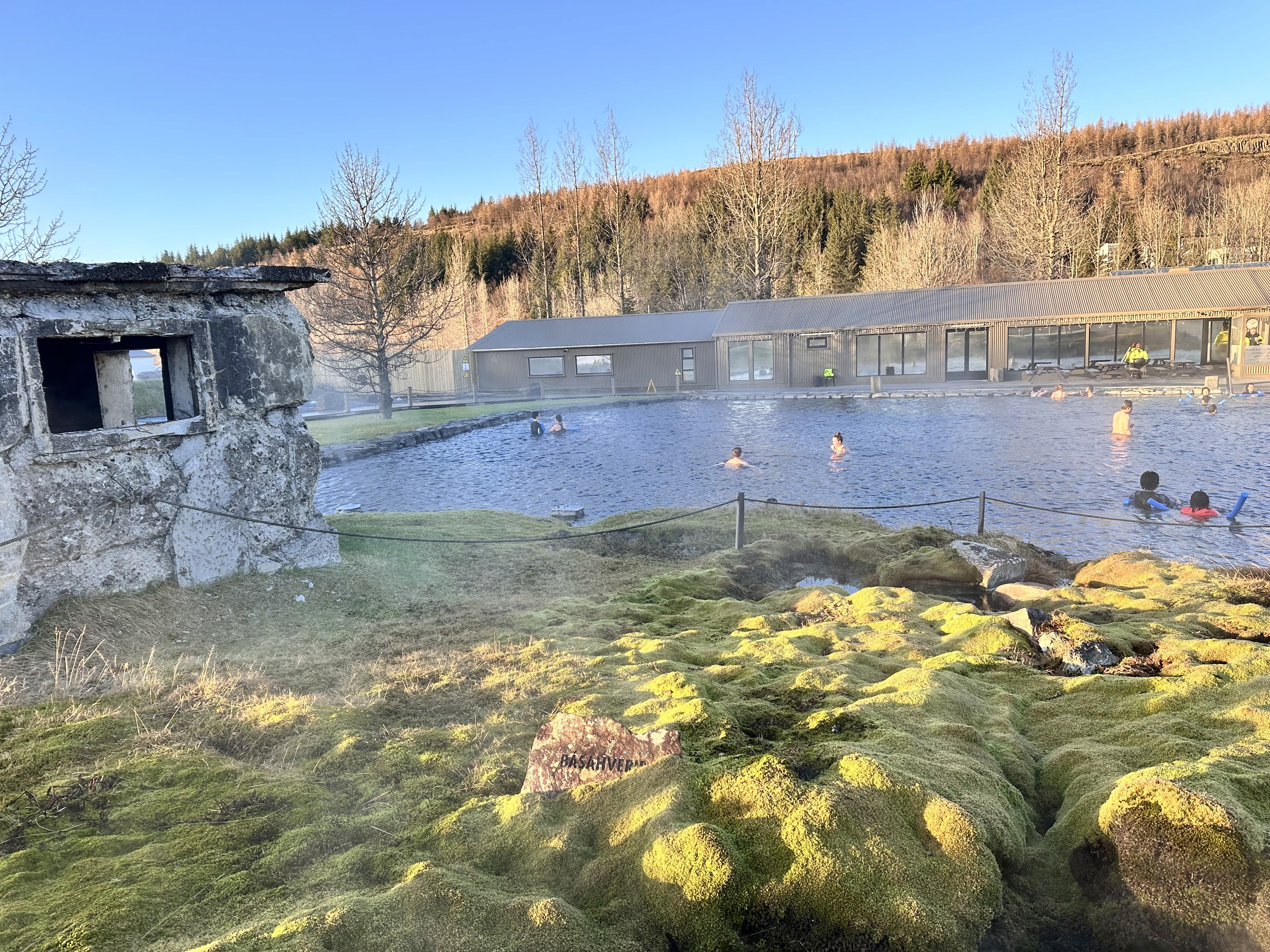 Vaðmálahver, Básahver, or Litli Geysir (active geyser which spouts every few minutes, showing off for the guests), provide 100% of the water supply in the lagoon. The pool water flows continuously, and it takes only 24 hours to its complete replacement. Warm, clean, rich in sulfur, stays at 38-40 Celsius all year round. Relaxing and healthy in any weather. Secret Lagoon is natural, simple, and unique so you can get the true Icelandic experience. Through the ages, it has been a tradition to bathe in warm water at Hverahólmi. In the old days, people also used it for washing clothes (in Vaðmálahver). In 1909, the first swimming lessons in Iceland were held at Gamla Laugin, and then every year until 1947. From 1947, Gamla Laugin fell into many years of oblivion. In 2005, the idea of giving the place a second life was born. It took several years to bring it back into use. The goal was to make it more comfortable, compared to the previous century, but still authentic.